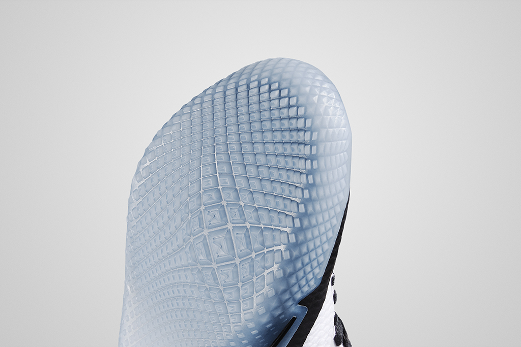 The materials used to construct the upper is split in half with the medial side using engineered lofted mesh for breathability and comfort. The lateral side features a textile material for support and stability. The height of the shoe has been changed to give greater flexability. Zonal padding is also used around the collar for extra stability.