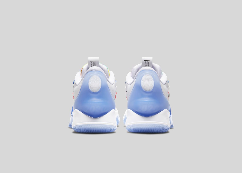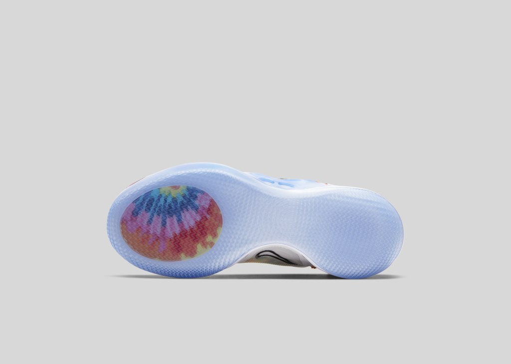 The Adapt BB 2.0 joins the recent trend of tie dye patterns on sneakers. Featuring a traditional tie dye print on the base, the mixture of bold colours give off a bust of energy from the shoe. The semi-transparent overlays over the upper and the white leather back does well to balance the colours to prevent the shoe from being excessively bright. Other details include the forefoot Zoom unit and the insoles featuring the same tie-dye pattern.