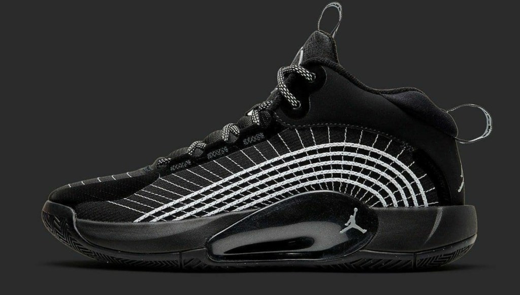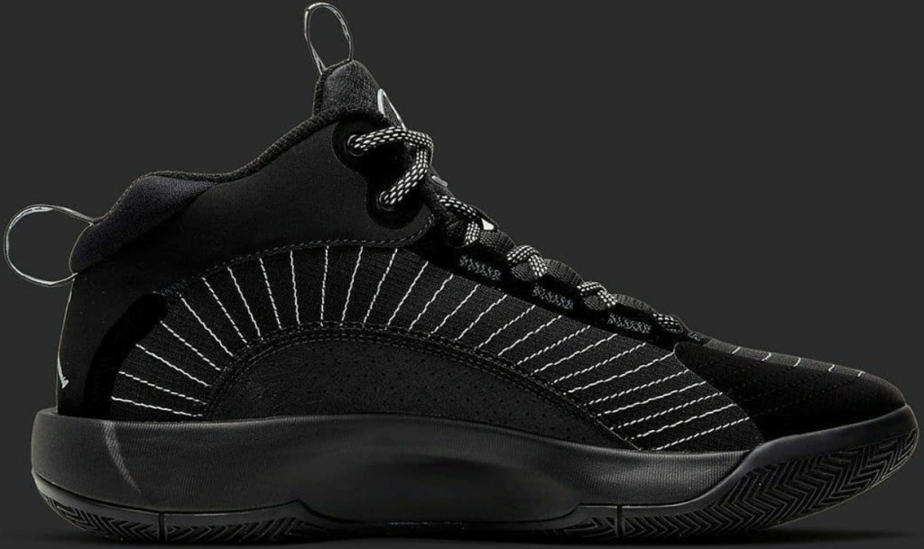 Overall upper looks similar to the Air Jordan 35, however it does lack the extra overlays the Air Jordan 35 sports. Also, it is suspected that the quality of the materials are lower than the 35th signature shoe. Both the tongue tabs and heel tabs are labelled “Jumpman”, once again confirming the status of the performance model.