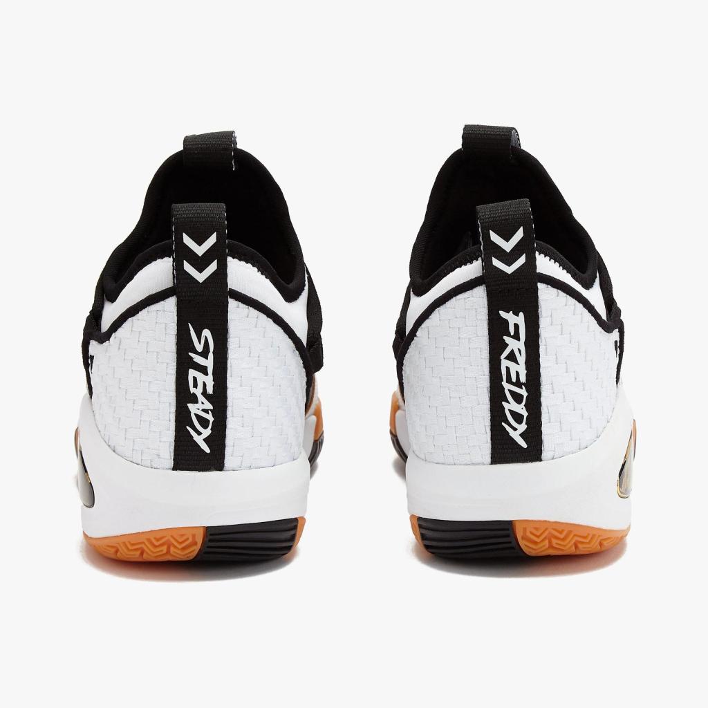 The first colourway is a simple colourway using a palette of black, white and metallic beige. Contrasting from the white base of the upper, the lining and laces are coloured in black with metallic beige stitching around the forefoot area. The shoe is finished off with a gum rubber outsole. Additional details include words on the heel tabs that read “Steady Freddy” and Fred VanVleet’s logo on the tongue and his signature on the tongue tab.
