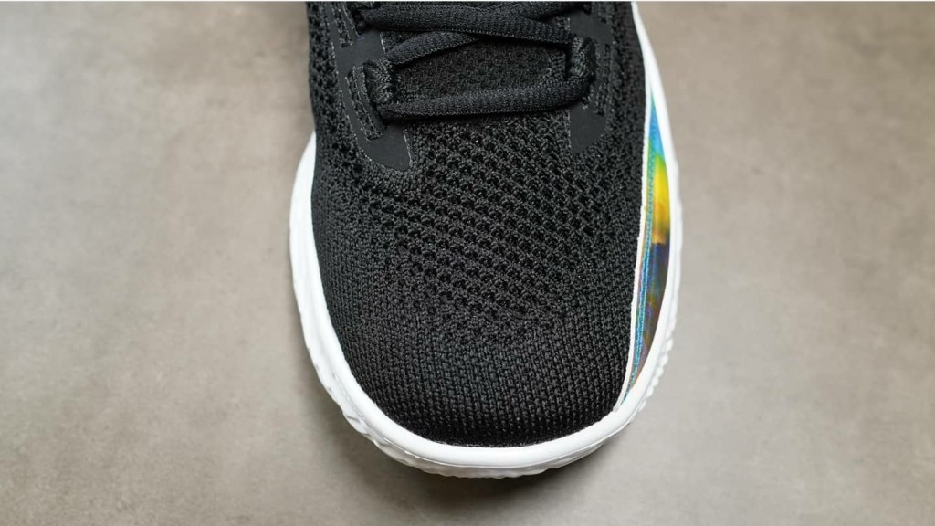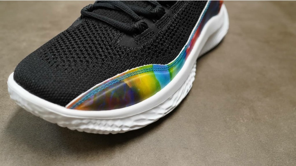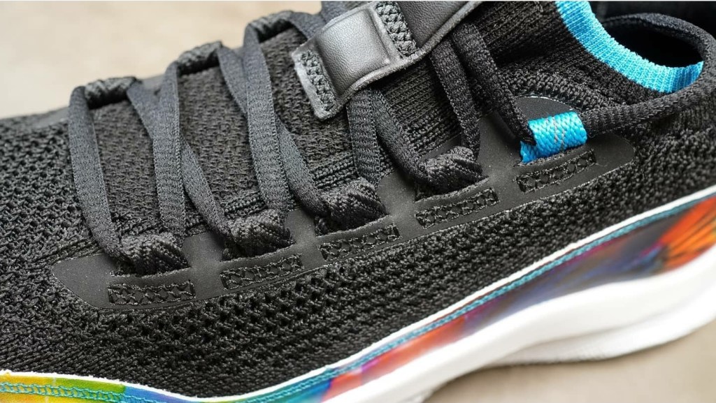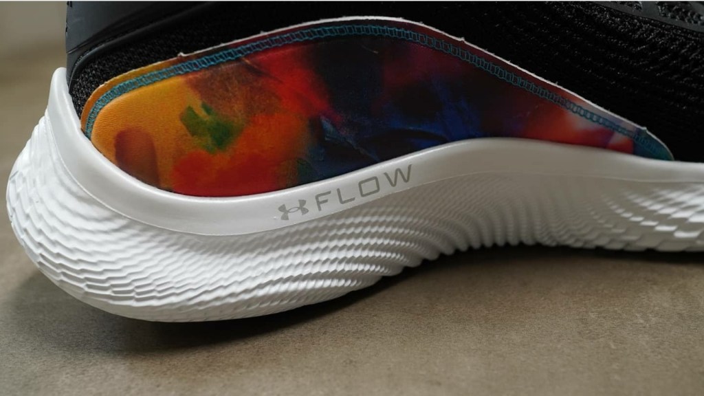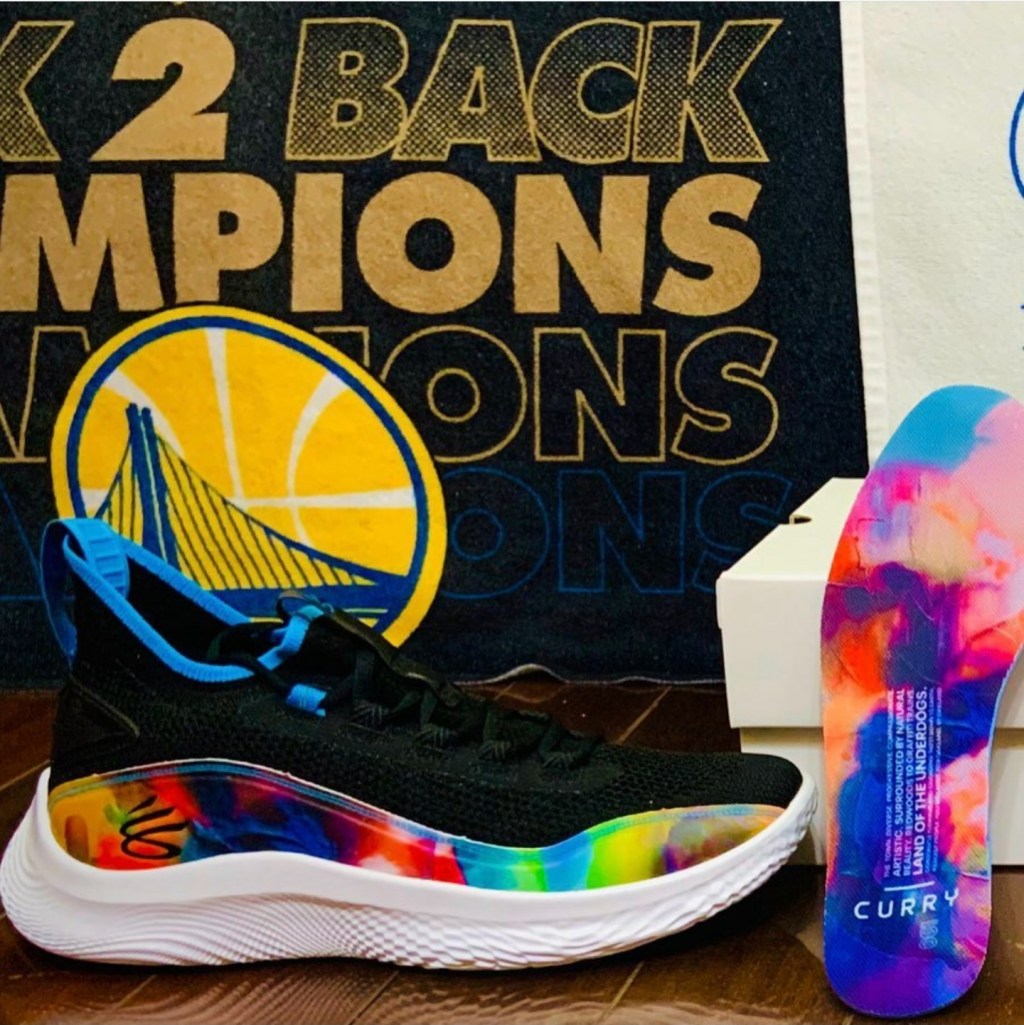 The first colourway to release features a black upper with a white UA Flow foam which acts as the midsole and the outsole. The most eye catching detail is the graphics on the side panels and the insole which shows a burst of bright colours. The same graphics can be found on the Manzanita Recreation Center, which was refurbished by the Curry Brand. This specific colourway looks to send the Curry Brand’s core message of giving back to the community.