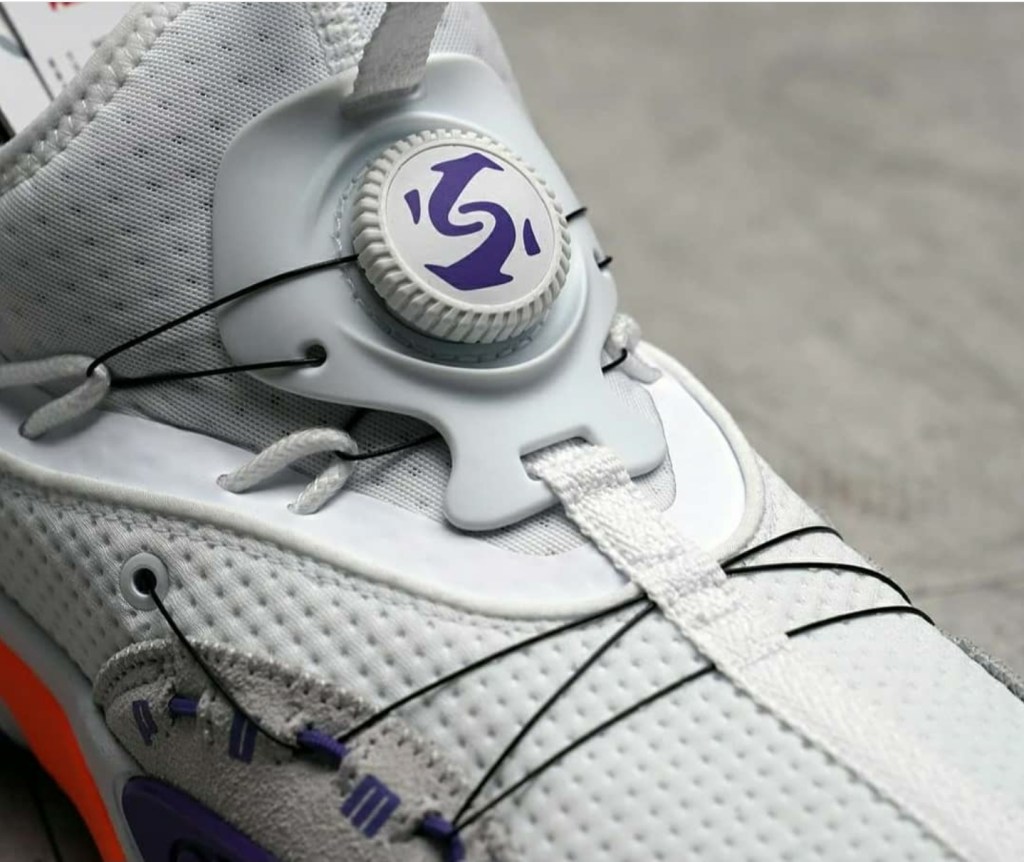 The design of the upper is strikingly similar to the Nike Adapt BB 2.0. It features a single body upper made up of performance mesh with nubuck overlays for protection and additional support. The most eye-catching feature on the upper is the double “Disc System”. A “Disc System” is placed on the tongue to tighten the tongue area. Another “Disc System” is placed on the heel with the wires covering the lateral side and medial side and the forefoot area. The double “Disc System” ensures maximum foot containment as the system is able to have the whole upper tighten over the wearer’s foot.