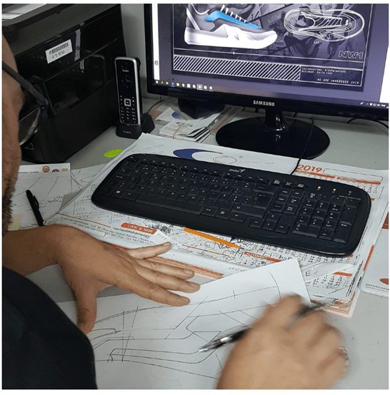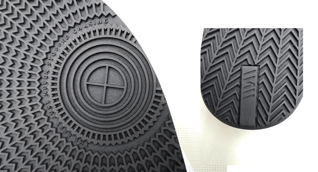 The outsole was a big part of the design process of the NW1. The aggressive outrigger “drove a lot of the language of the shoe”, Kaito Choy explains. Earlier sketches of the outrigger were heavily “comic-inspired, loud and aggressive”. Later, the design of the outrigger was simplified to take the form that would resemble the Nightwing logo. Another big design feature was the eyestay, the portion covering the eyelids was also inspired by the Nightwing logo. The aggressive traction combined with the signature symbol, “dictated the flow of the shoe”.