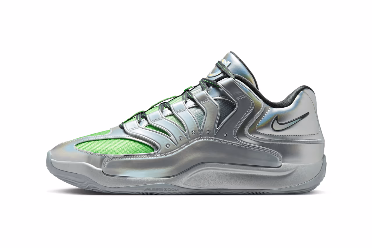 The KD line, long known for its versatility, continues to evolve alongside Durant’s fluid, efficient style of play. Built around effortless precision, the KD 18 features a Cushlon 3.0 foam midsole paired with a forefoot Air Zoom unit for a smooth, responsive ride. Drawing from Nike’s rich archive, the latest model incorporates a midfoot cage inspired by the late-’90s Terra Humara Trail Runner, blending retro design cues with modern performance engineering to create a balance of nostalgia and innovation on the hardwood.